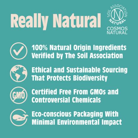 COSMOS 天然认证:确保环保制程、非基因改造成分、无争议化学品以及可回收包装。