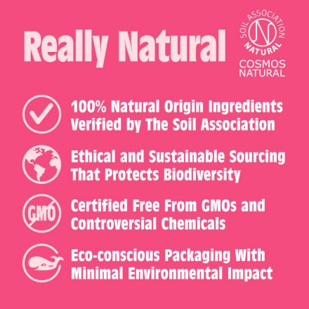 COSMOS 天然认证:确保环保制程、非基因改造成分、无争议化学品以及可回收包装。